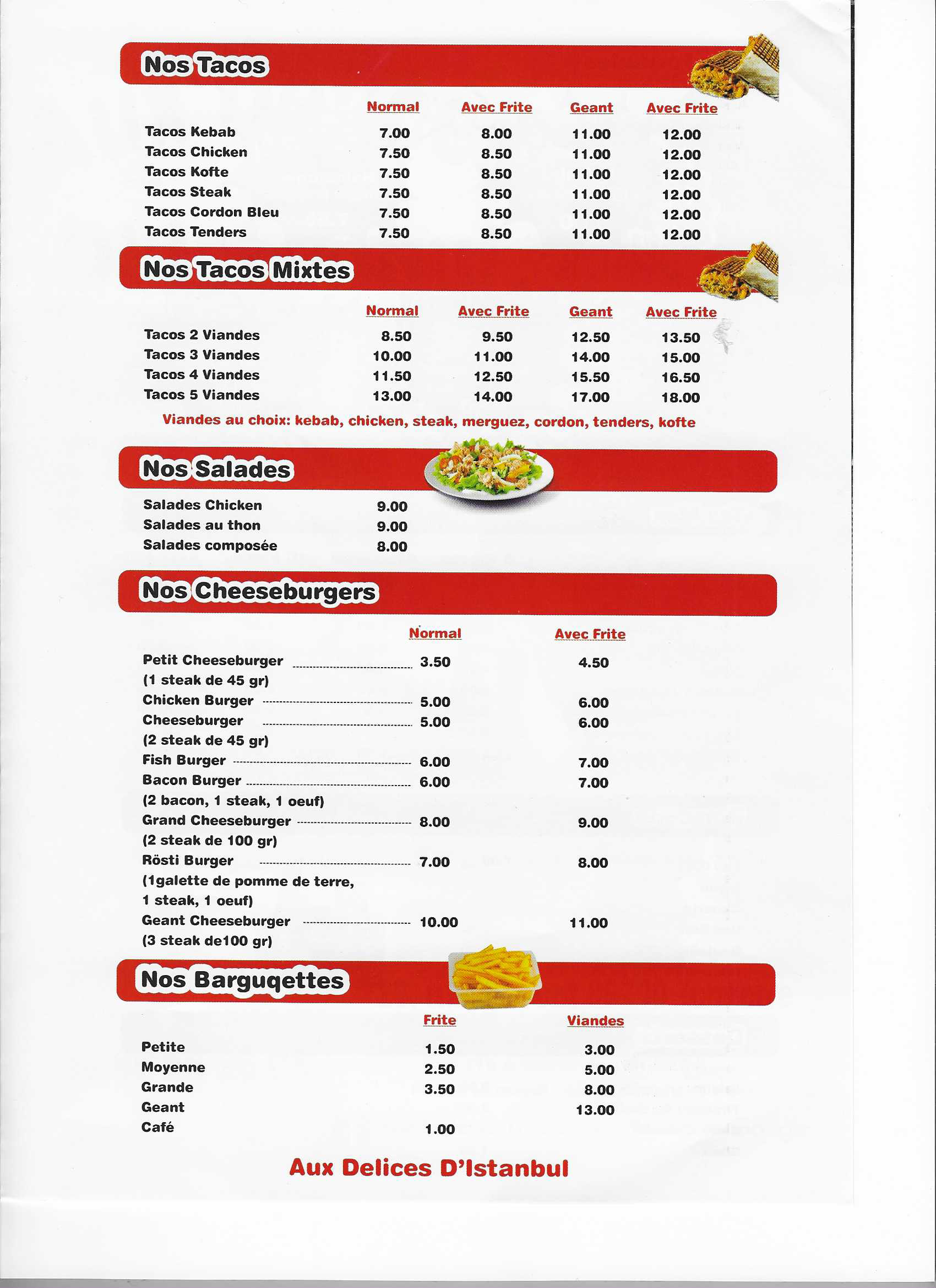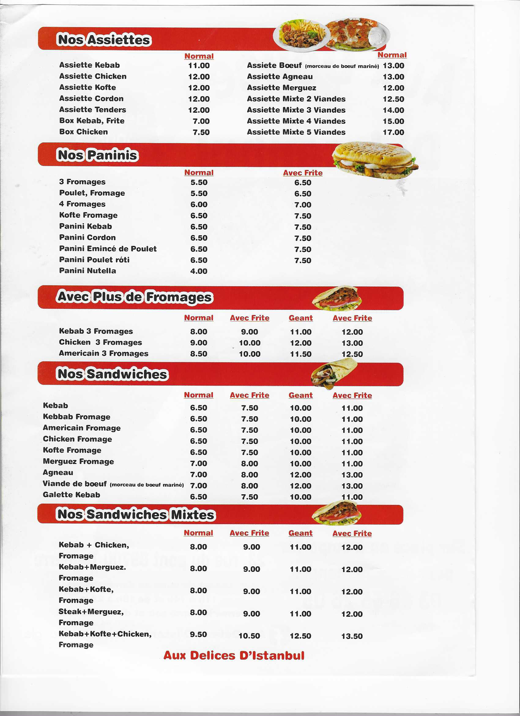 Une visite courte pendant votre pause déjeuner avec des plats savoureux et un service avenant ? Au « Aux Délices D'Istanbul », vous êtes au bon endroit. Nos clients aiment notre restaurant rapide pour la fraîcheur et la qualité de ses plats. Venez voir par vous-même et laissez vous convaincre. Notre offre vous inspirera. nn Nos plats halal variés sont très appréciés car ils sont préparés avec passion. Vous serez surpris du nombre de possibilités de repas sains dont vous disposez.nn Prenez place confortablement dans notre espace extérieur pour savourer votre repas.